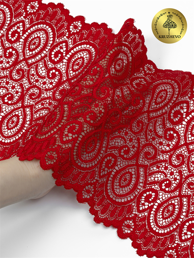 Кружево-стрейч 180 мм цвет красный. 1 м