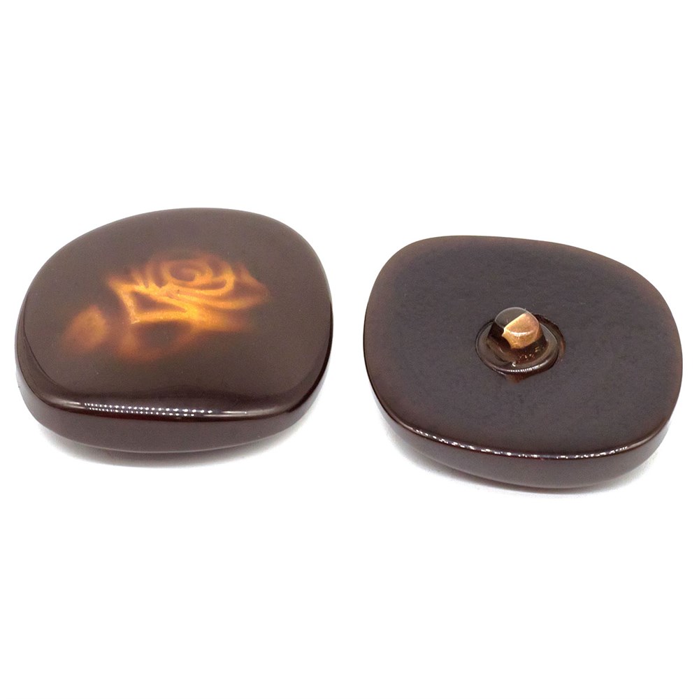 Декоративная пуговица привлекает внимание интересной неправильной формой и загадочно мерцающей объёмной розой расцветающей в центре пуговицы. Она смотрится очень стильно и благородно, подойдет для элегантных женственных дам.